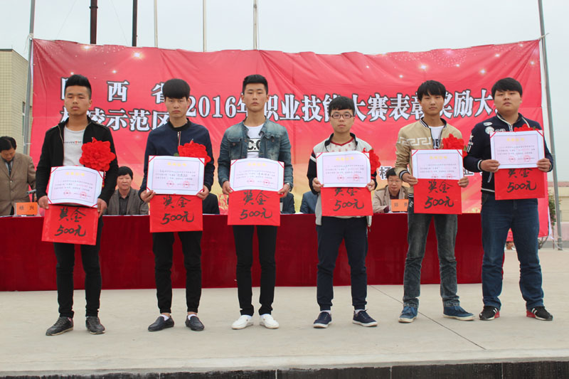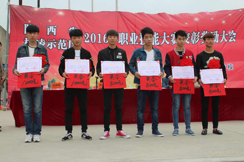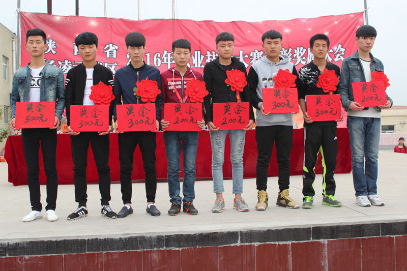 下午四时许,表彰大会在阵阵锣鼓声和鞭炮声中正式开始。首先张升礼校长总结我校2016省、区两级技能大赛参赛和获奖情况;接着教育局职教办王江涛同志宣读2016省、区两级技能大赛表彰决定;紧接着由各位领导为获奖学员和优秀指导教师颁发荣誉证书及奖金。(后附获奖名单) 接下来获奖学生代表----杨龙同学作获奖感言。最后王江涛同志讲话,他充分肯定了我校近几年职业教育所取得的丰硕成果,同时对获奖学生和优秀指导教师提出了一些期望和要求,鞭策我们戒骄戒躁,再接再厉,锐意进取,百尺竿头更进一步,为杨凌的职教事业做出更大的贡献!
