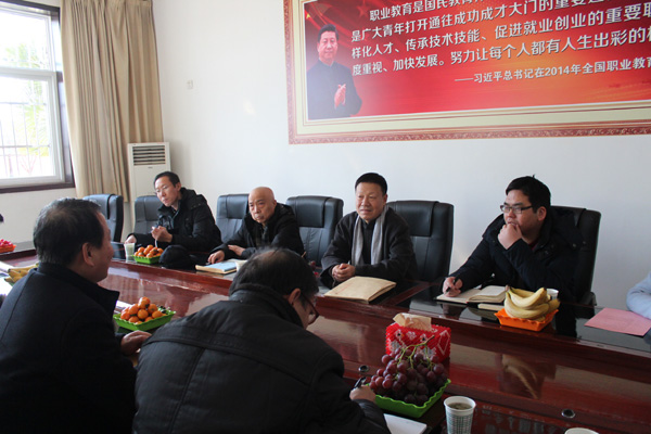 首先校领导陪同中华职教社考察团领导先后参观了工厂车间、实训厂房、校办合资企业、预备役部队住校军管办、学生宿舍、师生餐厅等实体场所;然后在东院培训部会议室召开座谈会,会上张校长、周老师分别就我校近年来学校教育教学、实习培训、招生安置就业等方面情况做了详尽的汇报。中华职教社领导对我校的工作成绩给予充分肯定,特别是对我校校企一体化、工学结合的“二元制”办学模式大加赞赏,并提出了一些建设性意见和合理化建议,希望我校在此基础上,挖掘潜力,与时俱进,砥砺前行,把校企一体化办学模式做大做强,把职业教育办出水平、办出特色!为提升学校整体发展水平不懈努力!