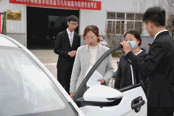 在赛场另一角,十余辆汽车依次摆放,汽车营销专业学生西装革履,裁判老师充当购车顾客,全真模拟4S店汽车销售全过程。“我原先性格特别内向,甚至有点恐惧说话,通过专业学习,改变了我的性格,现在我更乐于与身边人沟通,同时产生了毕业后开一家汽车装潢店的想法。”比赛现场,汽车营销专业学生李昱豪对“客户”提出问题应对自如,他自信的介绍,很快就“成交”了一辆吉利牌汽车。汽车销售、加工农机具、数控操作.....比赛现场如火如荼看得主播栓科跃跃欲试也和同学们进行了一场pk赛
